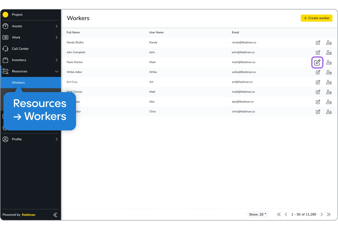 - Find the worker and click the Edit button. The "Edit Worker" form will appear.